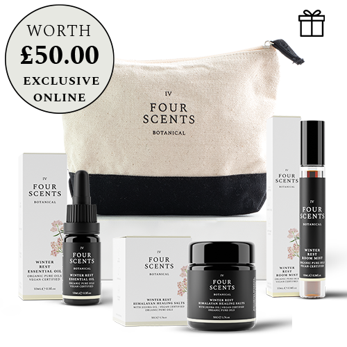 Four Scents Botanical Winter Rest 3 piece gift - the perfect grounding and relaxing travel companion that comes in a luxury canvas cosmetic bag.